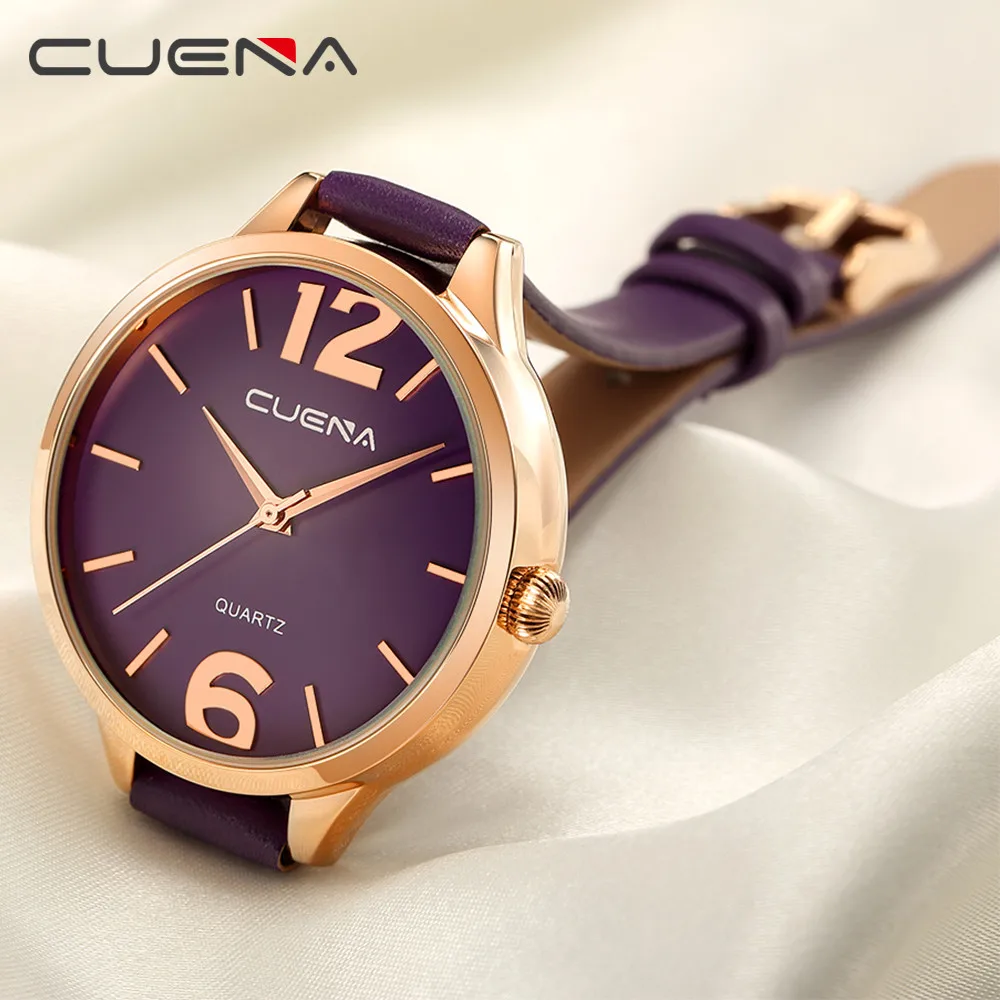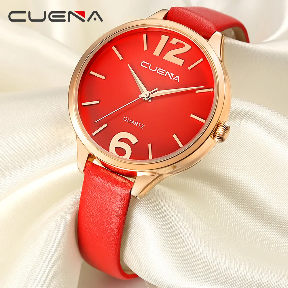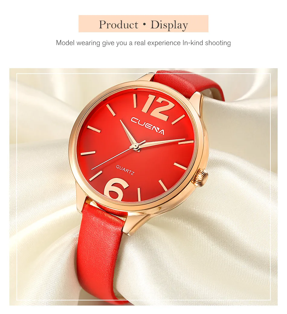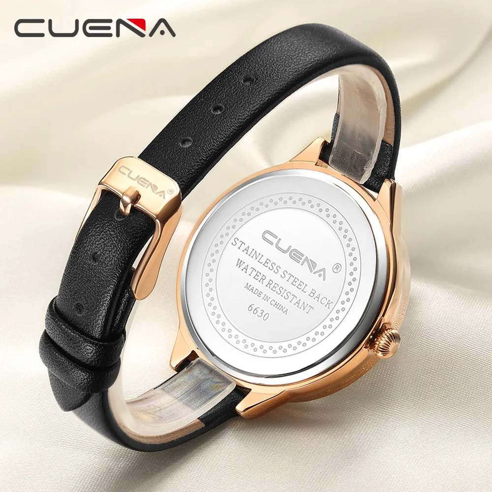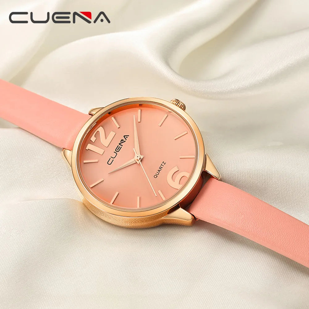 | [해외] CUENA 슈퍼 슬림 쿼츠 시계 럭셔리 브랜드 여성의 팔찌 시계 여성 시계 최고 럭셔리 브랜드 가죽 벨트 |