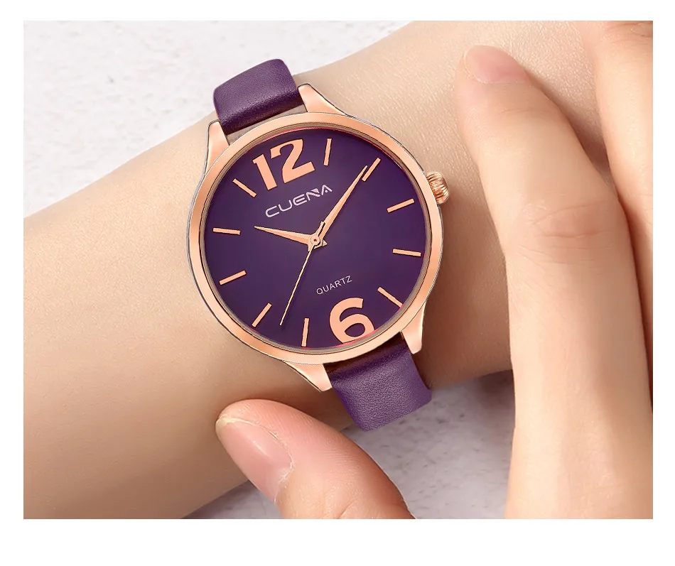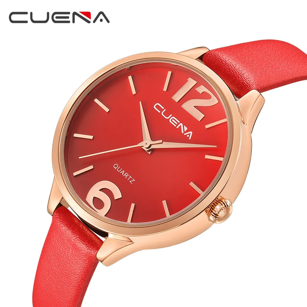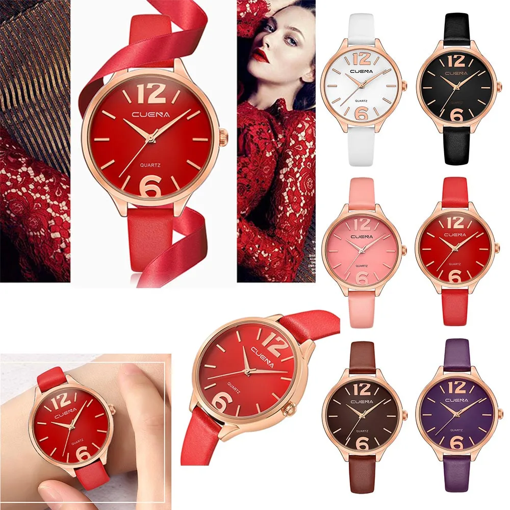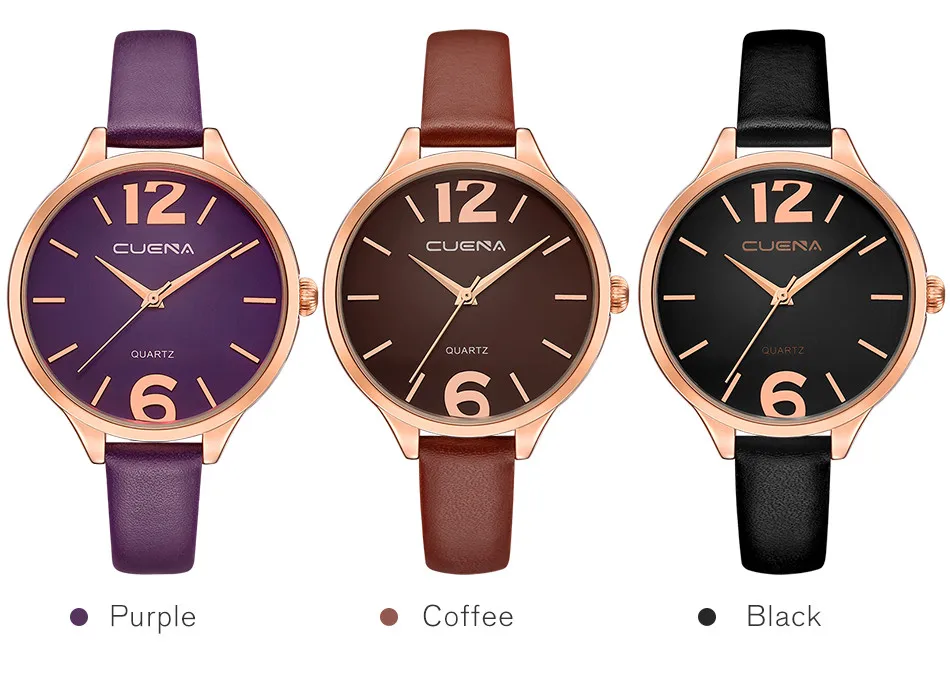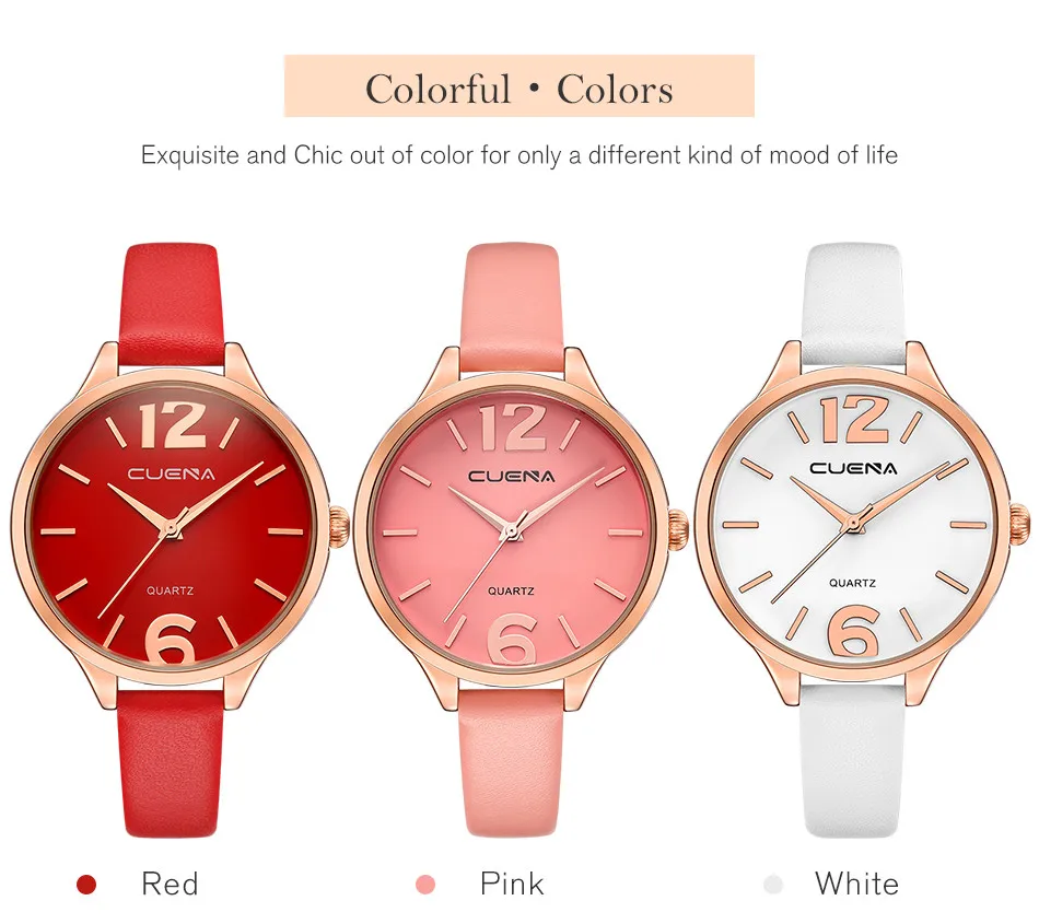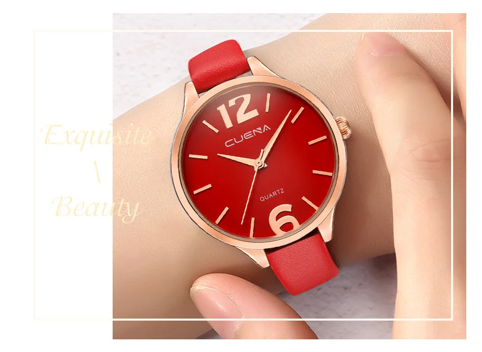 | [해외] CUENA 슈퍼 슬림 쿼츠 시계 럭셔리 브랜드 여성의 팔찌 시계 여성 시계 최고 럭셔리 브랜드 가죽 벨트 |