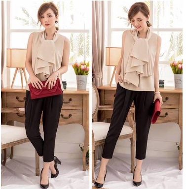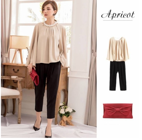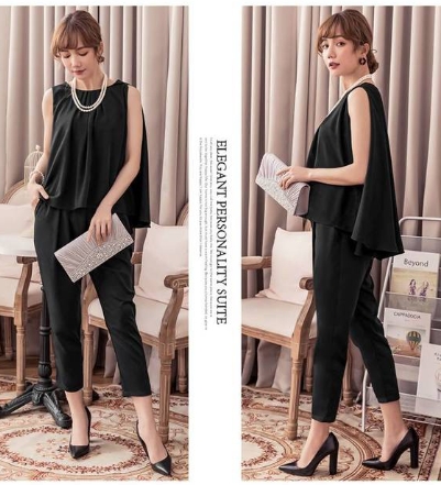 ケープ部分が4通りもアレンジができる優れもののパンツドレスです。