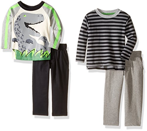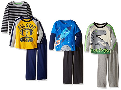 Gerber Graduates 8 piece season in a box set includes 4/tops and 4/pants. Mix and match pieces to create 16 coordinating outfits. Specifically designed for kids as easy-to-dress wear with no hard-to-use buttons or zippers. The innovative fabric technology allows garments to stay bright longer after excessive washing and less shrinkage for extended wear. Tops and leggings in trendy colors and prints. The perfect gift for your sweet boy. This set is available in 12 months, 18 months, 24 months, 2t, 3t, 4t, 5t.Feature