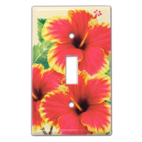 Hawaiian Switchplate Cover Red & Yellow Hibiscus