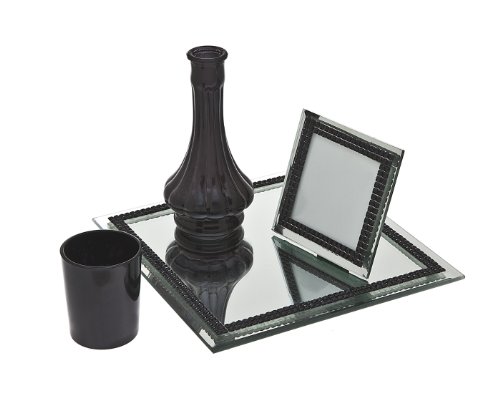 - Mirrored tray/mirror with black rhinestone trim