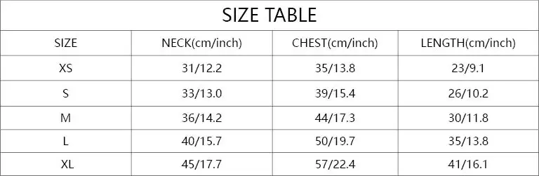 Item Size:XS/S/M/L/XL