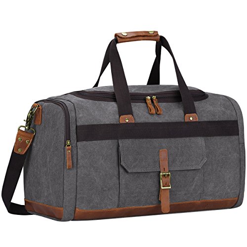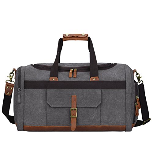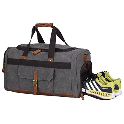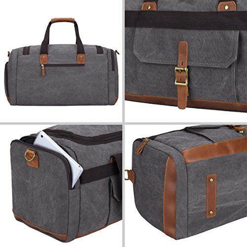 S-ZONE Vintage Canvas Geniune Leather Trim Travel Tote Duffel Bag with Shoes Pouch
