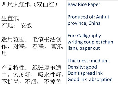 MasterChinese Red Raw Rice Paper: Paper Cut / Chinese Calligraphy / Wedding Party 70x138cm (27x55”) 10 Sheets (Practice)