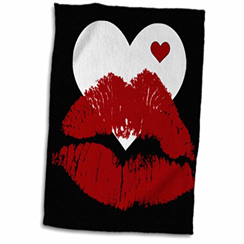 3D Rose Red Lips Against a White Heart Against Black Background twl_45406_1 Towel, 15" x 22"