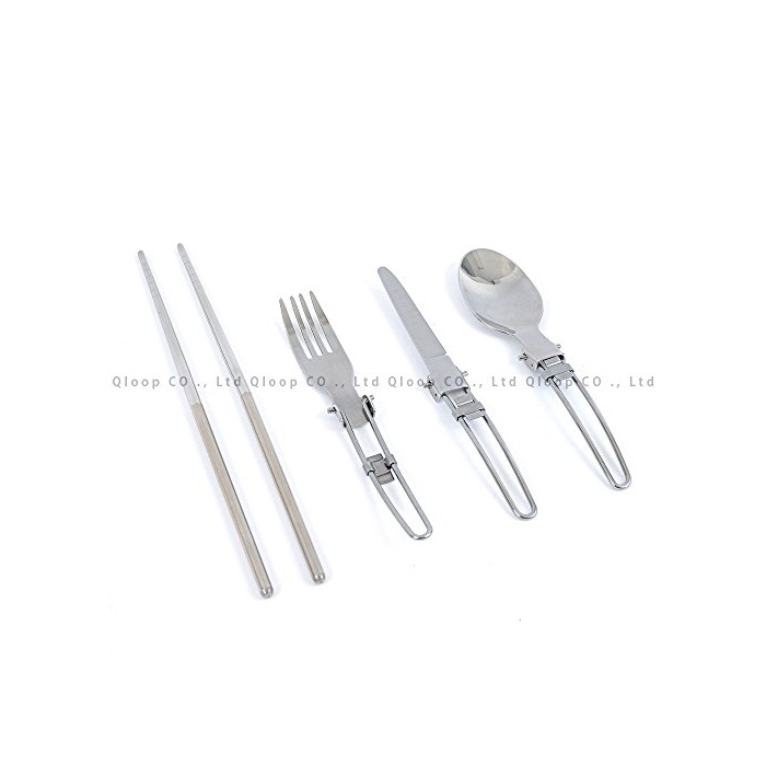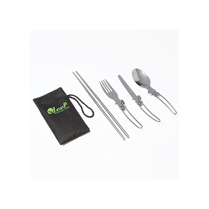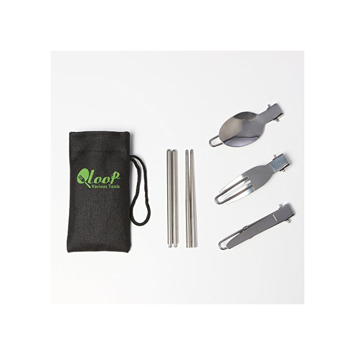 QLOOP 커트러리 무기 포크 스푼 나이프 연결 젓가락 4점 세트 젓가락도 들어 가는 수납 봉투 첨부