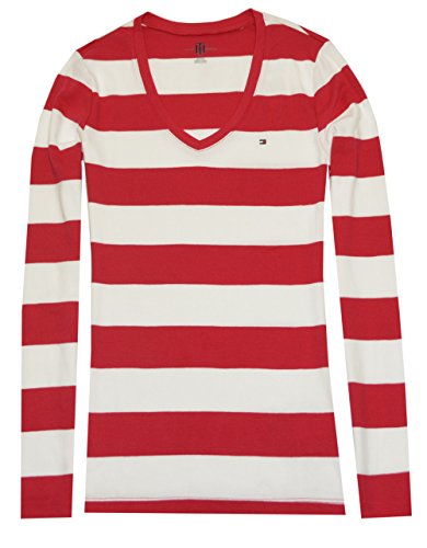 Tommy Hilfiger Women V-neck Long Sleeve Stripe T-shirt