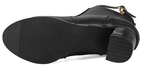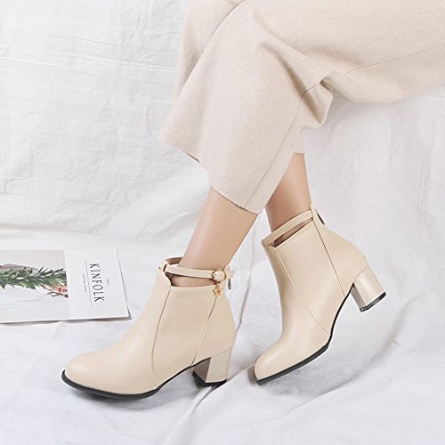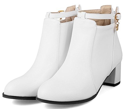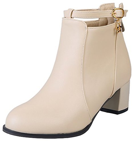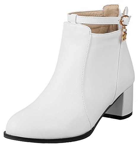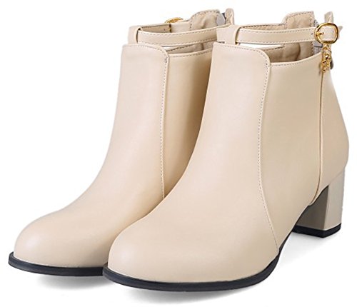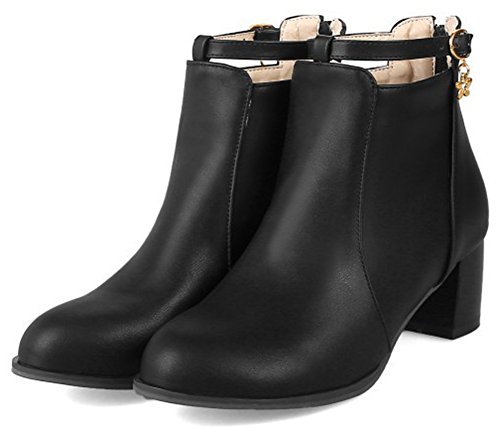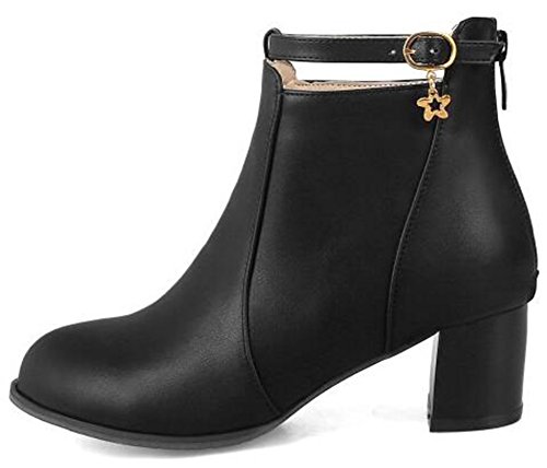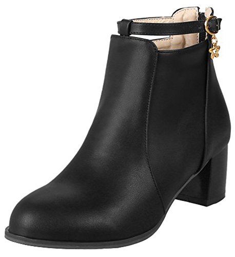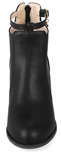(Mofri)/Women's/Boots/DIRECT FROM USA/Mofri Women's Dressy Buckle Strap Block Medium Heel Ankle Booties Round Toe Back Zipper Short Boots