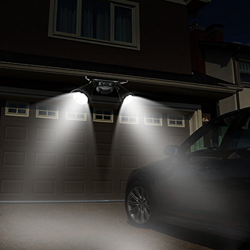 - 2-HEAD 360 DEGREES ADJUSTABLE: 360° rotatable spotlights and 60° adjustable solar panel, ideal for garages, workshops, industrial workstations, storage rooms, equipment rooms and other close task and large area lighting requirements.