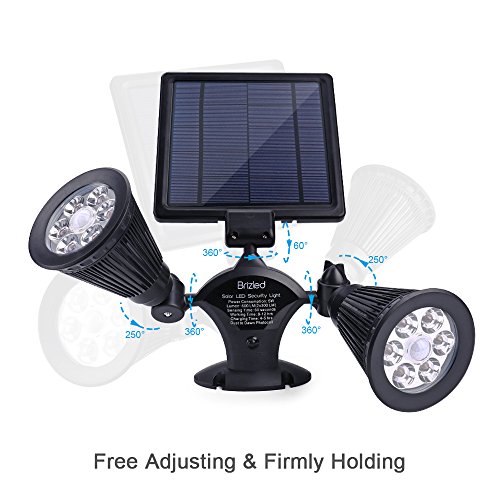 Brizled Solar Spotlights, Two-Mode Motion Sensor Solar Security Lights, 12 LED Outdoor Flood Light Dual Head 360 Degree Rotatable, IP65 Fully Weather Resistant for Wall, Garage, Patio and Deck, 2 Pack