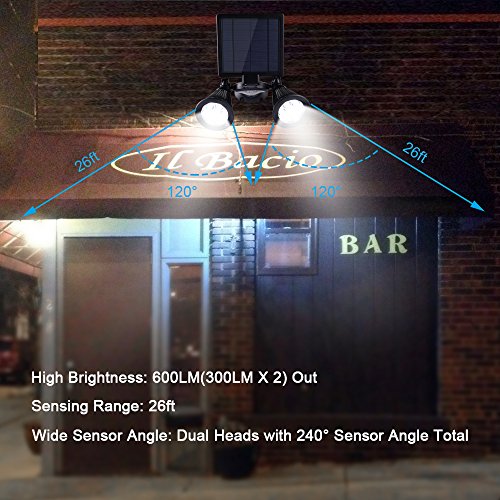 - LIGHTS AUTOMATICALLY: Built-in PIR Motion Sensor, Lights auto turn on in the night and auto turn off in the daylight, sensing range up to 26 feet and 120 degrees.