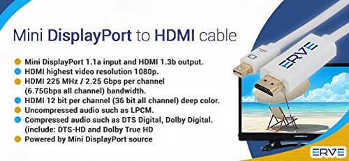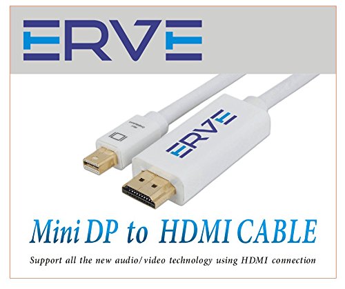 ERVE 5ft Mini DisplayPort to HDMI Cable, Mini DP to HDMI, Thunderbolt Compatible, Full HD 1080p, 4K support, Connect your MacBook with your Full HD TV