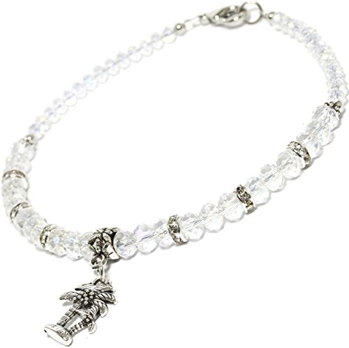 -. Title : AnsonsImages 9.5" Inches Anklet Bracelet Palm Tree Crystal Cut Beads Clear Rhinestones
