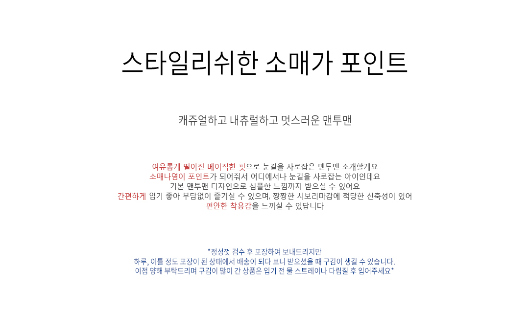 .같은 사이즈라도 체형에 따라 핏감이 조금씩 다를 수 있습니다.