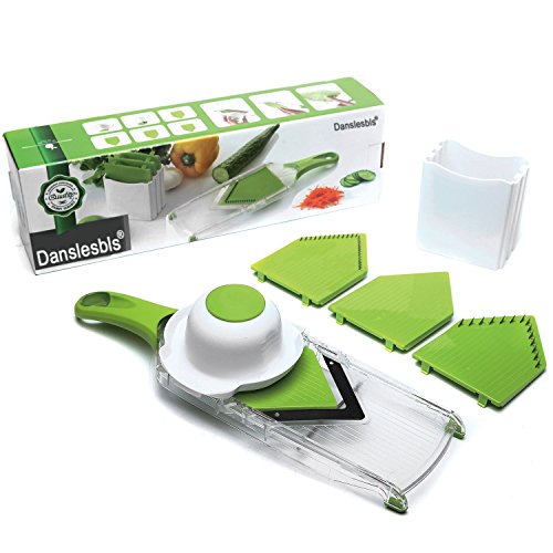 Danslesbls Mandoline Slicer for Vegetables - Onion Slicer and Dicer - Julienne Slicer - Kitchen Gadget with Stainless Steel Blades and Silicone Handle & Feet