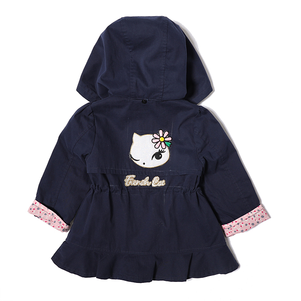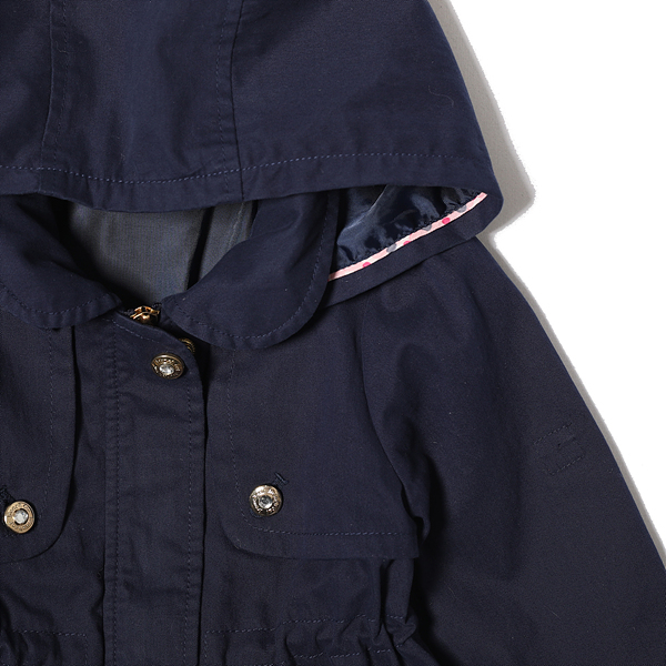 상품설명 모던한 네이비 컬러의 사파리 입니다. 간절기에 걸치기 좋은 아우터 아이템입니다. 탈부착이 가능한 후드가 달려 있어 캐주얼한 코디가 가능합니다. 등에는 귀여운 캣 아플리케 자수와 블링한 로고 자수로 포인트를 주었습니다.