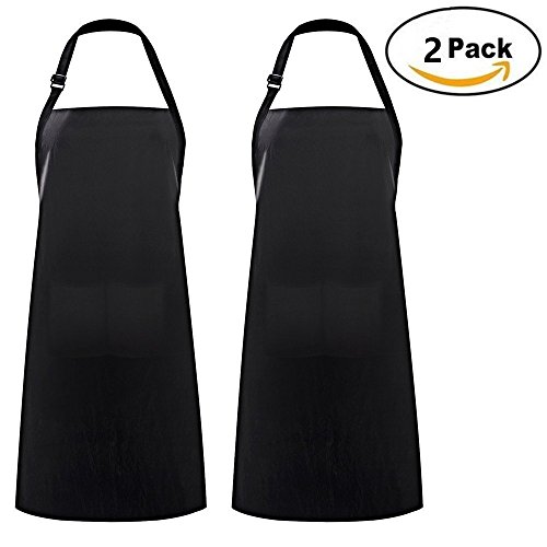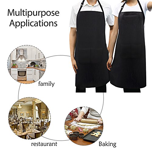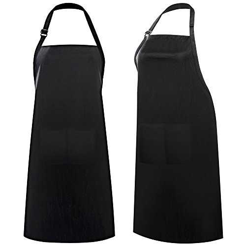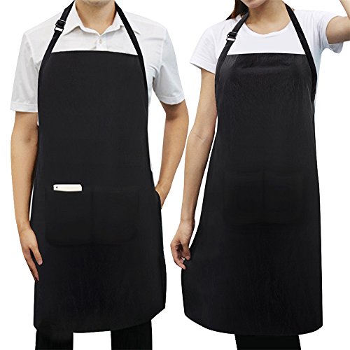 Adjustable Apron Bib with 2 Pockets, X-Chef 2-Pack Waterproof Unisex Aprons with Adjustable Neck Strap for Men Women Chef Baker Kitchen Garden Craft Restaurant, Black