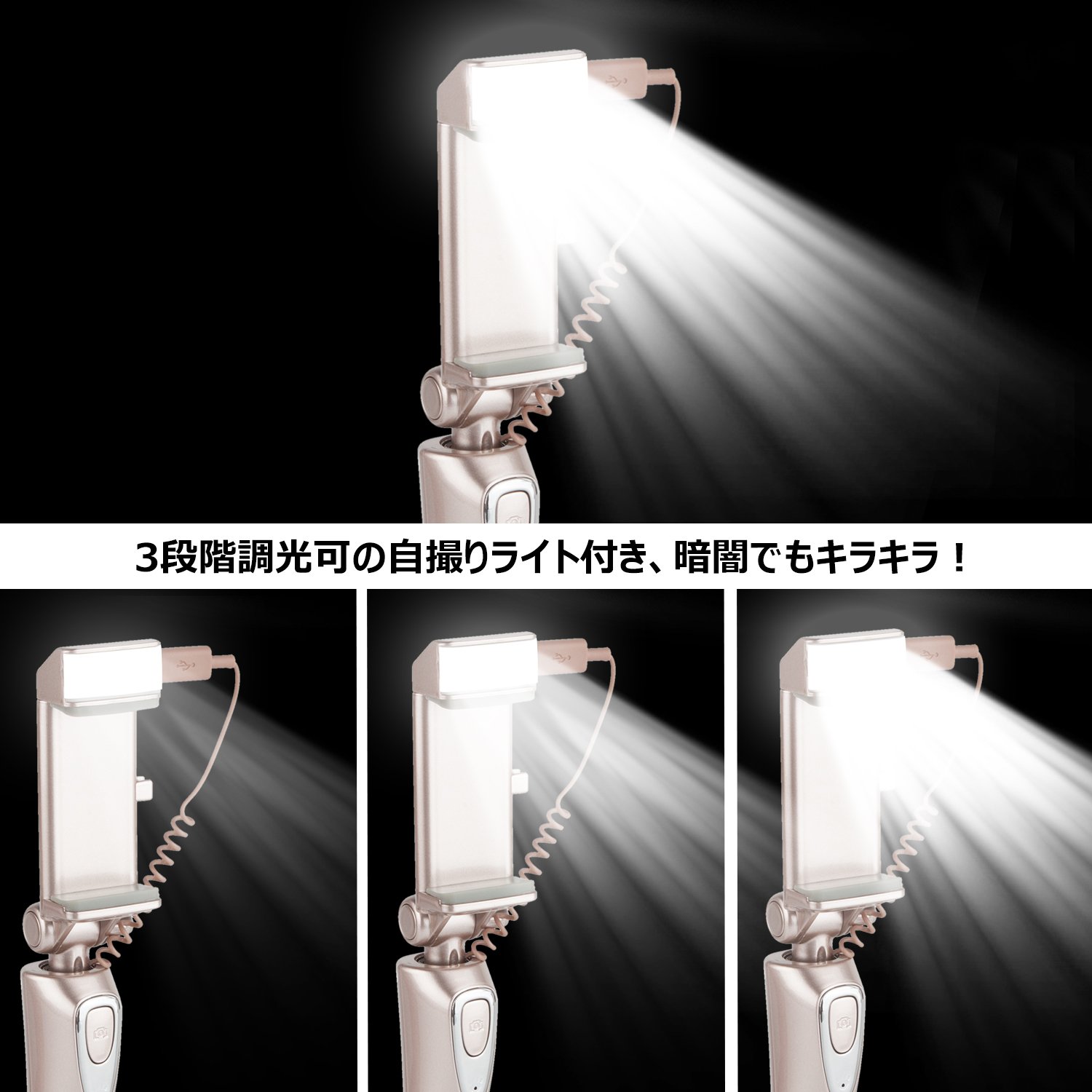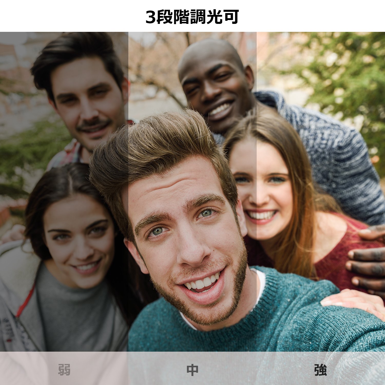 With self-shooting light with 3 step dimming enabled, beautiful photos can be taken even in the dark.