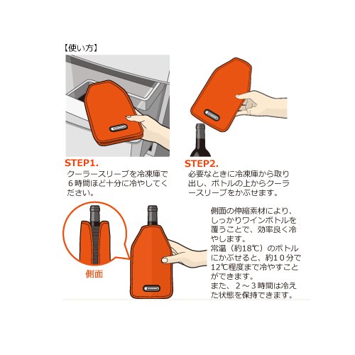 운반으로도 편리한 와인 쿨러.사전에 냉장고에 넣고 두면 언제라도 식힐 수 있습니다.보틀의 위로부터 씌우는 것 뿐(만,만큼) (이므로)그래서 취급도 간단.