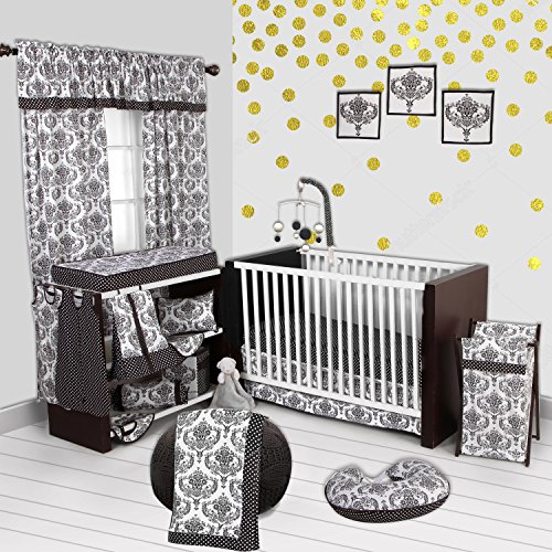 -. Title : Bacati - Classic Damask White/black 10 Pc Crib Set Bumperfree