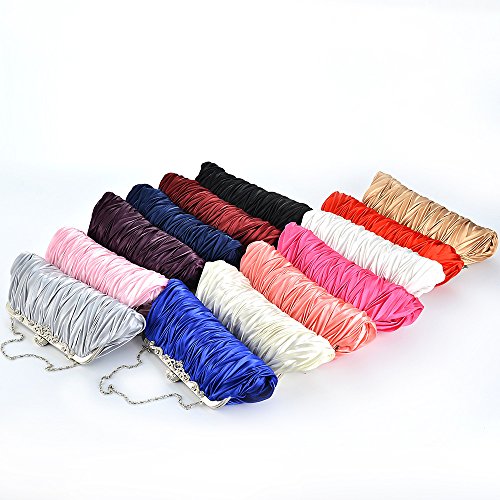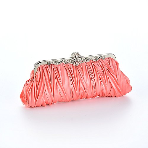 Purse features a cinched satin design with silver rhinestone adorned trimming for high-class sass!