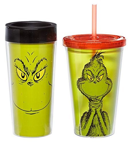 Dr. Seuss Grinchmas 16 Oz. Plastic Travel Mug & 18 Oz. Acrylic Travel Cup Gift Set by Vandor