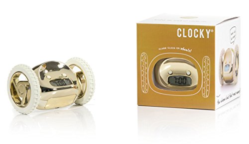 Studio : Nanda Home, Inc. Publisher : Nanda Home, Inc. Binding : Kitchen Product Description What is it? The alarm clock that runs away beeping, to get you out of bed. Can't wake up? You're not alone. Stats show that 40% of people 'abuse' the snooze. Typical alarm clocks just don't work very well. Ours never lets you oversleep again. If you snooze, Clocky will jump off of your nightstand, and run around beeping, absolutely determined to get you out of bed on time. Clocky's hip, innovative and charming. Strong battery life up to a year Perfect nightstand size 5.25" x 3.5" x 3.5" Uses 4 AAA Lithium Batteries; not included 0