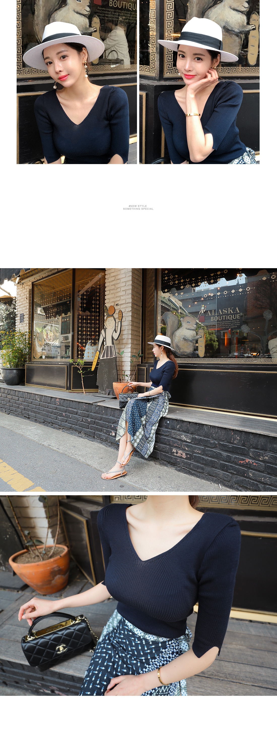 MD COMMENT 골지 짜임의 양브이넥 니트티를 소개합니다.깔끔하면서도 세련된 디자인의 니트 아이템으로소매 부분에 트임 디테일이 포인트로 더해져입었을때 더욱 예쁜 니트 아이템이에요.양브이넥 디자인으로 여성스러운 무드를 더했으며얼굴 라인을 한층 더 갸름하게 연출해준답니다.슬림한 실루엣으로 바디 라인을 날씬하고 예쁘며 연출해주며다양한 종류의 팬츠, 스커트들과함께 매치하기 좋아 활용도가 높아요.데일리 아이템으로도 손색이 없으며9가지 다양한 컬러들로 구성되었답니다.COLOR/SIZE 네이비,블랙,베이지,퍼플,그레이,아이보리,코발트블루,체리핑크,그린FREEMODEL FITTING 네이비/FREE