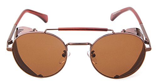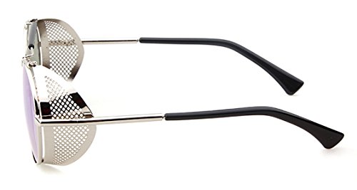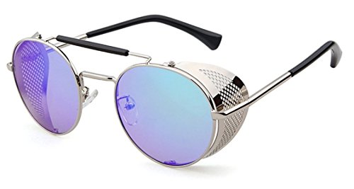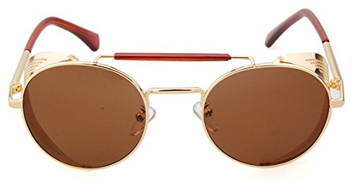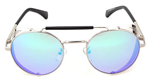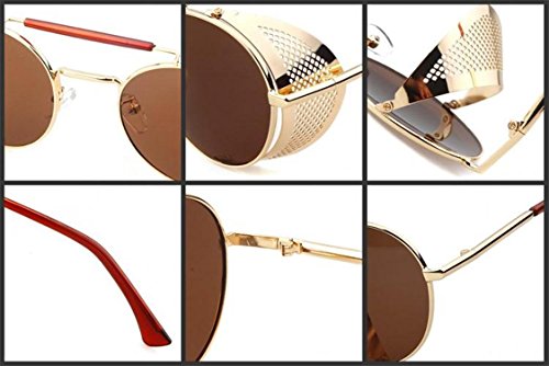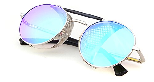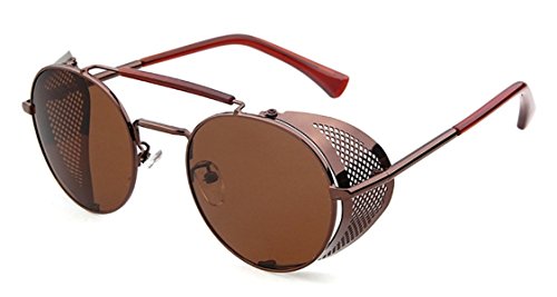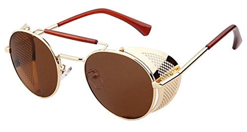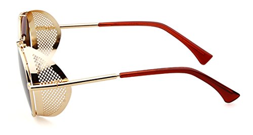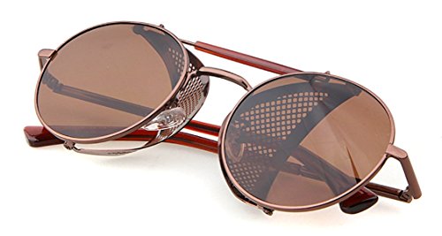 Product Description These classic metal frame round sunglasses feature cool mesh fold-in side shields on either side of the metal frames as a nice balance of form and function. Thick and sturdy, workmanship Oval lenses, UVA UVB Protection Metal mesh fold-in side shields Clear adjustable nose pads 100% Brand new and high quality 0