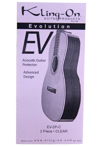 Studio : Kling-On Publisher : Kling-On Product Description Kling-On sells products that protect certain instruments from being scratched and marred by the fingernails of the players and the picks they use. Although dependent on how you play, the EV-2P-C two piece, clear protector can be used on our guitars, lutes and bouzoukies, as well as other instruments of the same family that you strum. Its purpose is to protect the area around the sound hole of soundboard from scratches. The protector is removable and there is no glue based adhesion, so it can be removed and reapplied. You can use the original backing for storage. Use on fully cured finishes.If you're playing style is such that it leads to scratches between the sound hole and the bridge, please see EV-3P-C or for even more durability, see EV-3P-U, as it is a thicker guard.The Kling-On Company developed the first removable, clear vinyl pick guard for classical guitarists. The goal of the design was to protect the guitar tops from being scratched and marred by the fingernails of the players. During the last 20 years, Kling-On has developed many new and innovative products for both classical guitarists and acoustic guitar players. More recently, the Kling-On Company has been selling the Evolution Series. This new line up of products introduces many enhancements over the original product design. 0