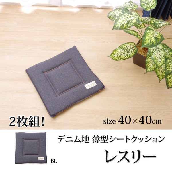 【商品名】クッション 椅子用 シート 薄型 デニム風 『レスリー』 約40×40cm 2枚組