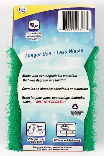 Fregon EcoClean Multipurpose Scrubber For Pots, Pans, Kitchen, and Bathroom, Green, 3-Pack