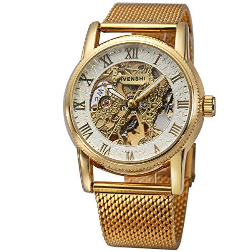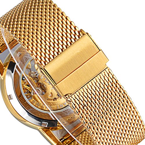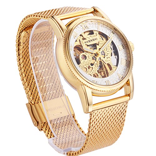 -. Binding : Watch -. Brand : ManChDa -. Color : Gold -. Department : Mens -. EAN : 0750810762246 -. Feature : Golden-tone dress watch with golden Milanese strap featuring skeleton dial / Mechanical self-winding movement with analog display / Features deployment-clasp closure / Please keep the watch away from magnet to avoid making the watch stop working.Please wind up the watch before every usage / Nice gift for your father, your family, your friends or yourself -. Label : ManChDa -. Manufacturer : ManChDa -. Model : MCDJXA009WH -. MPN : MCDJXA009WH -. PackageQuantity : 1 -. PartNumber : MCDJXA009WH -. ProductGroup : Watch -. ProductTypeName : WATCH -. Publisher : ManChDa -. Studio : ManChDa -. Title : Mesh Band Golden Mens Skeleton Automatic Mechanical Roman Numerals White Dial Wrist Watch + Gift Box -. UPC : 750810762246