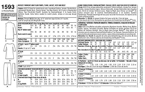 Simplicity Pattern 1593 Women's Knit Slim Pants, Tunic, Jacket, Vest, Belt Sz 20W-28W
