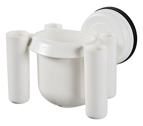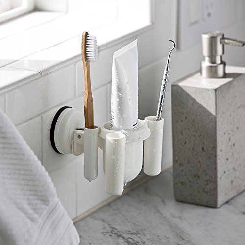 FECA FE-N8002 Toothbrush Toothpaste Holder with Suction Cup For Bathroom Shower Glass Mirror Wall Mount In White Toothbrush Toothpaste Holder with Suction Cup Glass Wall Mount In