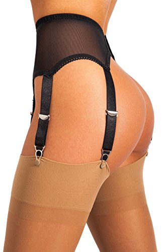 Ladies: Want lingerie that makes you feel SEXY AND CONFIDENT - for that special someone or just for yourself? Unlike strappy garter belts that are made just for skinny supermodels, the sofsy classic Mesh Suspender / Garter Belt was made for beautiful women of ALL SHAPES AND SIZES! It not only looks gorgeous; it's made of strong, elasticized mesh that SLIMS YOUR WAIST, HIPS, & TUMMY. This retro-style garter belt is comfortable, too! While cheap products have waistbands that are thin and tight, ours is wider, with soft material that won't cut into your skin. Plus, it retains its elasticity over time so you always have a great fit.