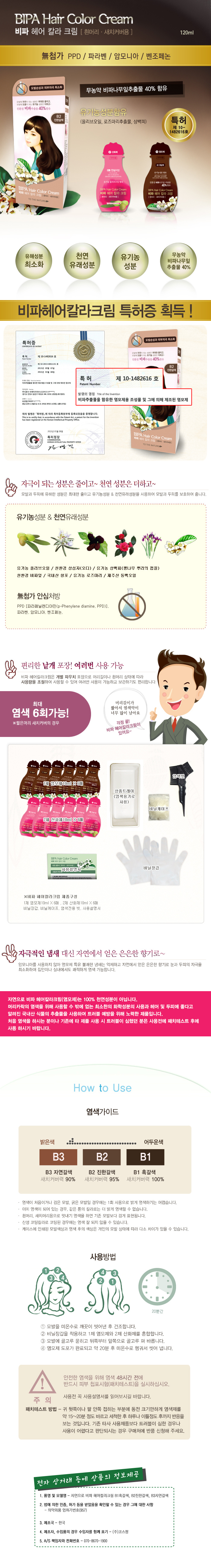 - 품명 및 모델명자연으로 비파 헤어컬러크림 B1흑갈색,B2진한갈색,B3자연갈색