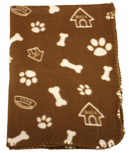 - Title : 30x21 Inch Dog / Cat Fleece Blanket - Bone and Paw Print Assorted Color Pet Blankets by bogo Brands (Brown)