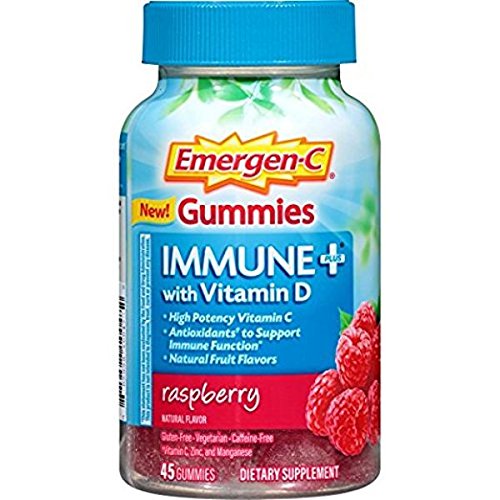 Emergen-C Gummies Immune Plus Vitamin D, Raspberry, 45 Gummies (Pack of 2)