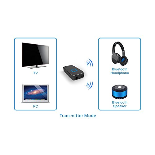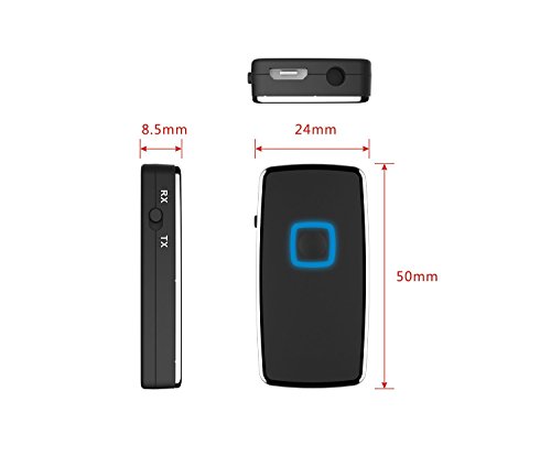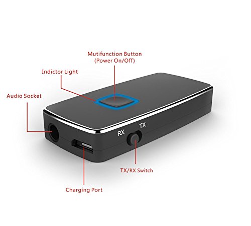 Easy Operate-- Easily pairs with Bluetooth stereo headset, headphones, speakers and other Bluetooth stereo audio enabled system. Easily adapt via A/V, RCA, and 3.5mm jack input. One-button switch to shift between transmitter (TX) and receiver (RX) mode