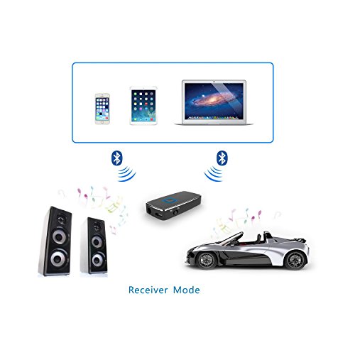 2in1 Receiver and Transmitter Modes--Support receives and transmits simultaneously, easily to connect two Bluetooth receivers.It features high quality and clear stereo sound for wireless audio streaming from a range of 30 feet.