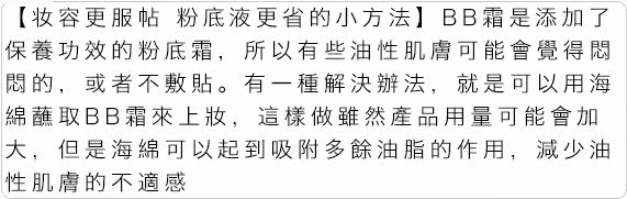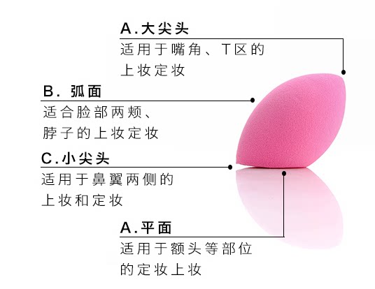 3.以拍打按压的方式上妆,截面那头上额头脸颊等大面积处,尖头的处理鼻翼眼周等细节处