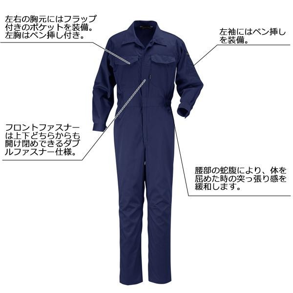 T/C素材を使用した定番スタイルの長袖つなぎ服。