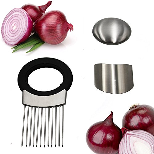 -. Feature : ★USER FRIENDLY HANDLE: The specially designed non-slip handle of this premium quality onion slicer prevents mess in the kitchen and keeps food odours away from your hands. / ★CHOP SAFELY: Ideal for chopping green salad, vegetables, or even your sushi in perfect slices, while your fingers are perfectly protected from cuts and injuries. Impress your guests with your imaginative salad design! / ★SMART DESIGN: With its convenient, ergonomic design, the IDEAMAZE vegetable slicing guide makes cutting your vegetables into uniform slices a breeze! / ★STAINLESS STEEL DURABILITY: Rest assured your new vegetable holder and the stainless steel fork will be your precious kitchen aids for life! Its simple form makes it easy to clean in no time under running water. / ★LIFETIME GUARANTEE - Feel at ease when using the garlic crusher knowing that you are covered by our lifetime guarantee and if for any reason you are not happy return it with a no questions asked replacement.