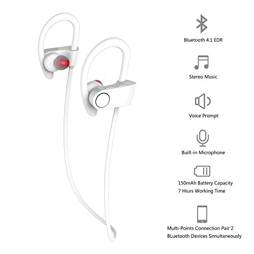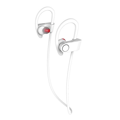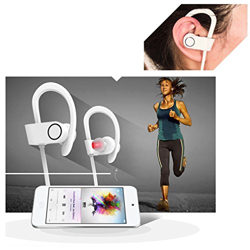 DBJ Bluetooth Headphones Runner Sport Earphones - Wireless Earbuds for Running, White (Bluetooth 4.1, Secure Ear Hooks Design with Cable Clips)