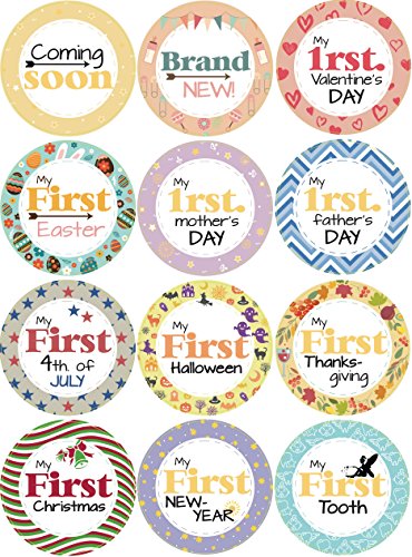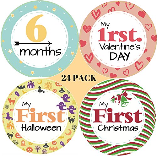 24 PACK Baby Milestone Stickers; includes 12 Monthly Stickers and 12 First Holidays Stickers
