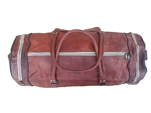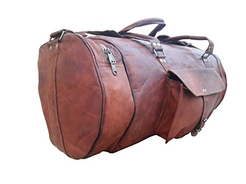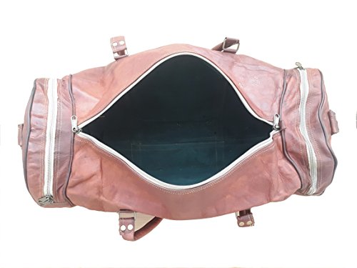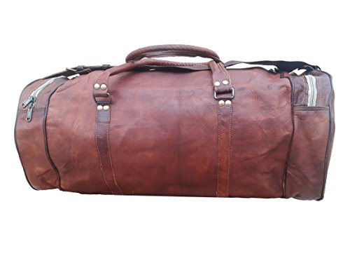 -. Feature : Dimensions : 11" inches ( Height ) x 22" inches ( Length ) / Made from naturally processed and tanned leather, strong, lightweight, durable goat leather, tanned without the use of chemicals. / Big main compartments for clothing /travel and sports gear etc, multi utility bag can be used as a travel bag, gym duffel bag, sports duffel bag, overnight bag, weekend cabin duffel bag, carry on duffel etc, hand crafted product by experienced craftsman, high quality long lasting zippers, a genuine hand made product using natural leather. / Canvas lining and best quality accessories furnished / Bag have 1 pocket out side, 1 zip pocket on each side and adjustable shoulder strap