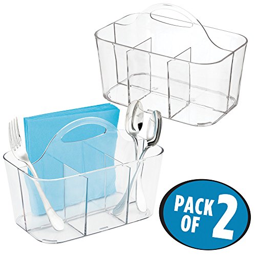 mDesign Cutlery Flatware Caddy Organizer for Kitchen Countertop Storage, Dining Table - Pack of 2, Clear