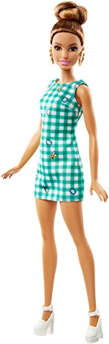 -. Feature : Barbie Fashionistas doll wears a versatile dress in lime gingham sP.R.Inkled with a floral P.R.Int / Big golden hoop earrings makes a trendy accessory, and white platform heels are so cool / Her light brown hair styled in an updo completes her fabulous look / Find your style and play out your stories / More variety makes collecting Barbie Fashionistas dolls even more fun. Collect them all (each sold separately, subject to availability)
